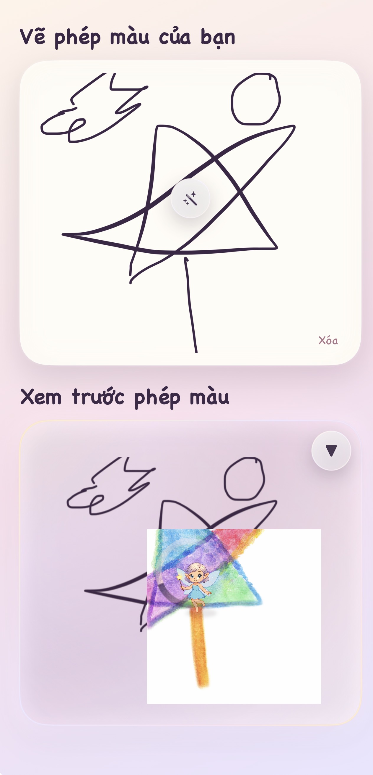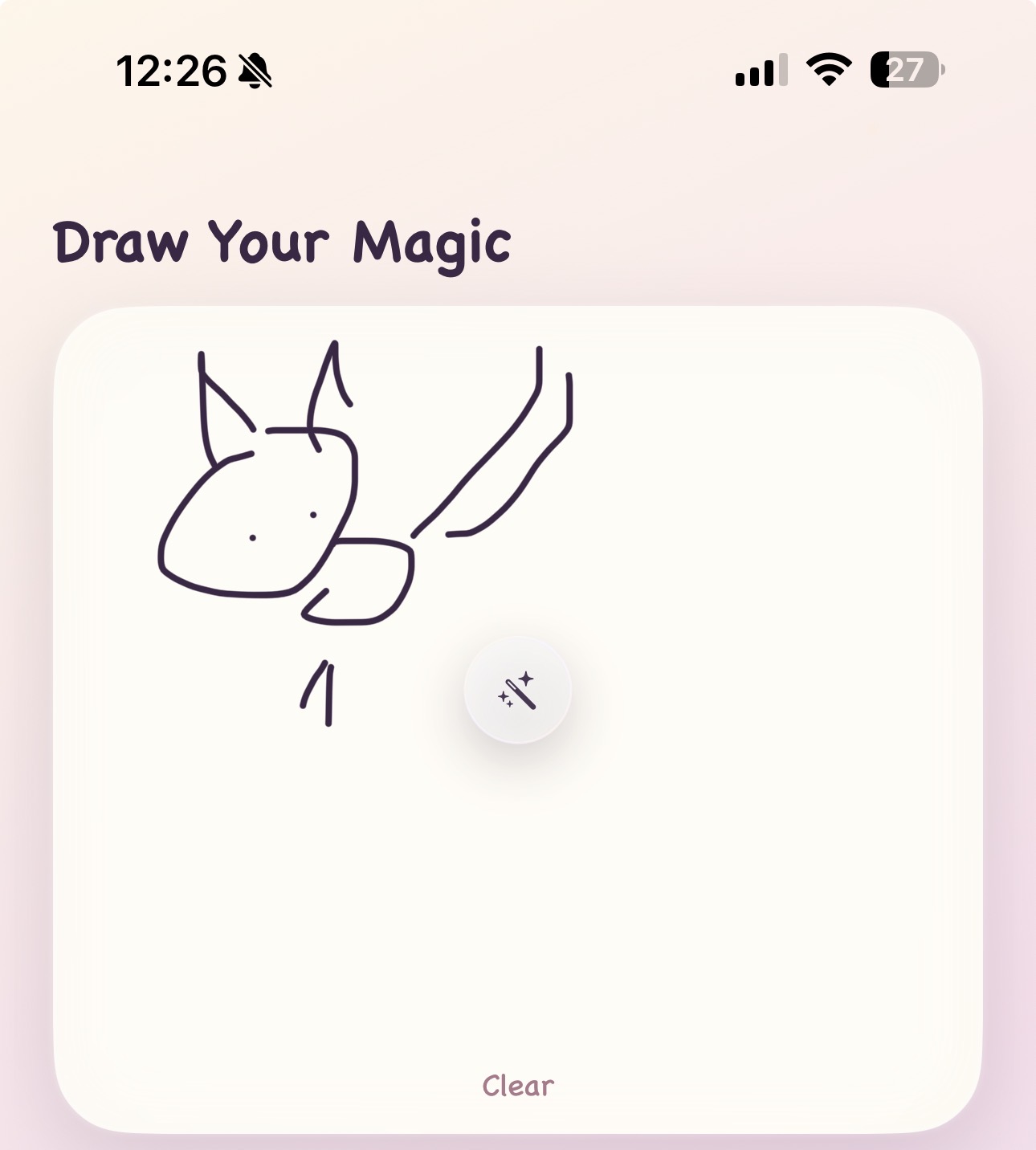 Draw anything — a cat, a castle, a squiggly monster. Tap a spell and watch your doodle sparkle into something delightfully magical.